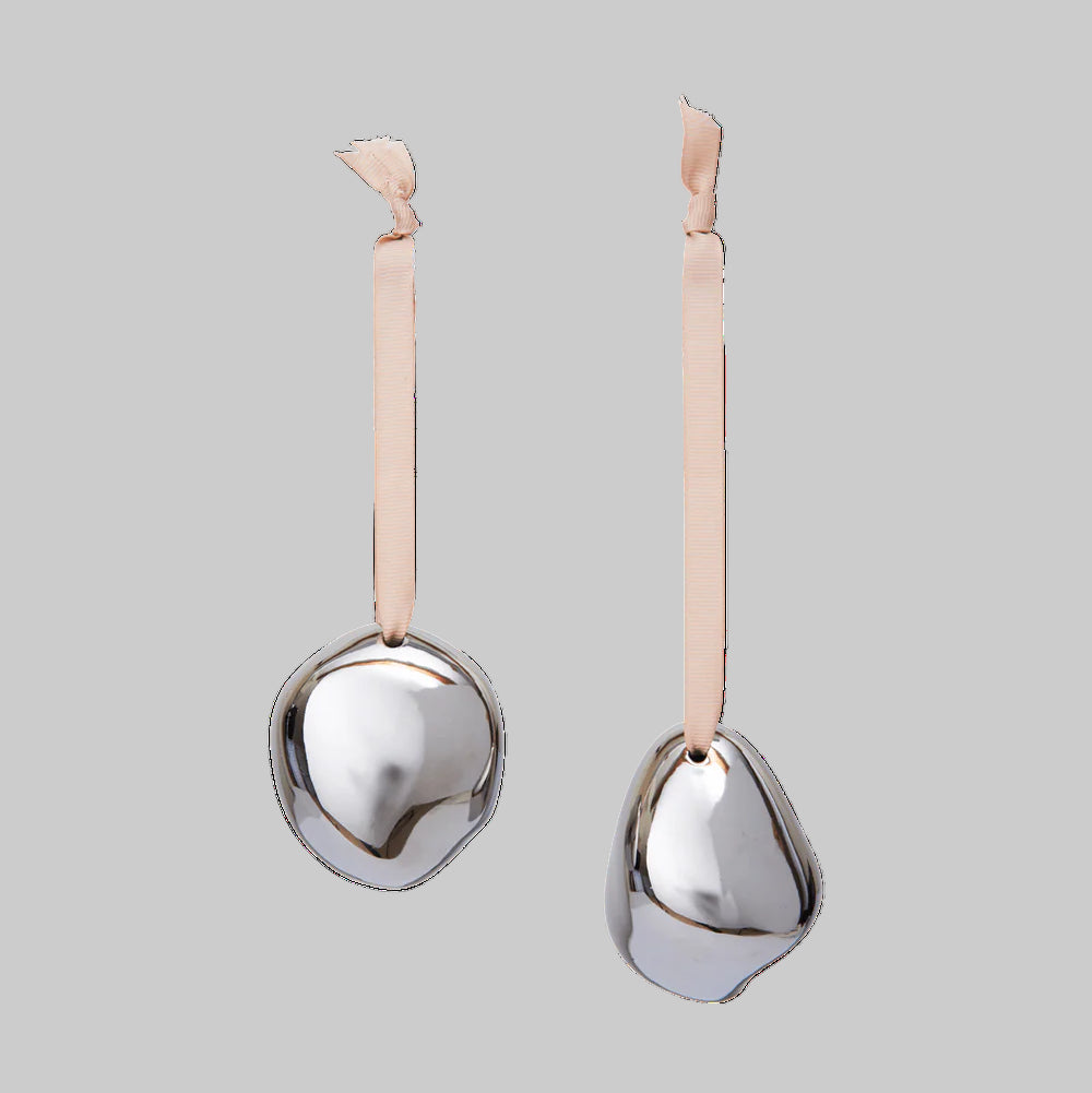 Inspired by the soft, organic lines of river stones, the Bellure Baubles bring a sense of balance and stillness to any festive setting. Their smooth, silver-plated porcelain surface gently reflects the light — a reminder that beauty often whispers.