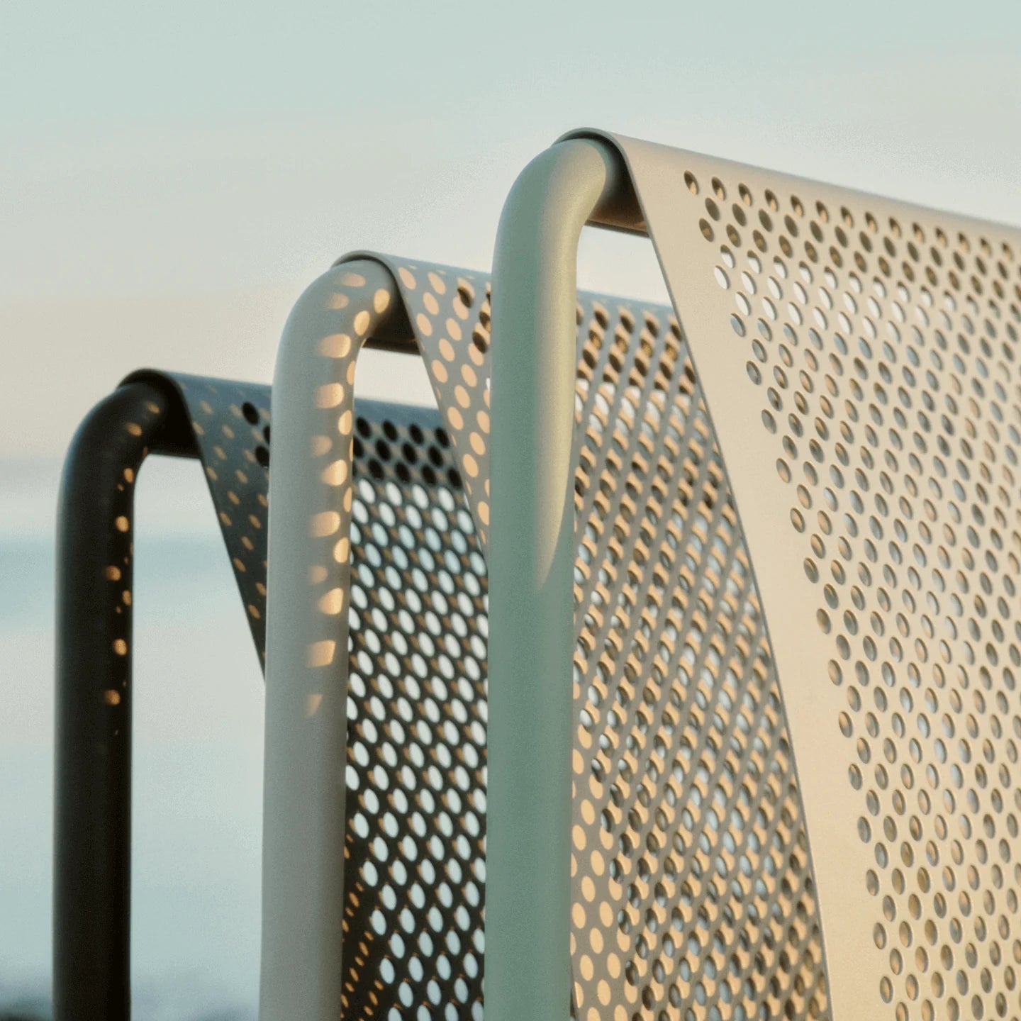 The Dapple collection is inspired by the beauty of sunlight filtering through leaves, bringing a sense of calm to outdoor spaces. The Dapple chair is made from powder-coated, galvanized steel, ensuring durability and weather resistance while offering an elegant aesthetic. This stackable chair embodies a modern, minimalist style and enhances your outdoor area in a simple yet impactful way.