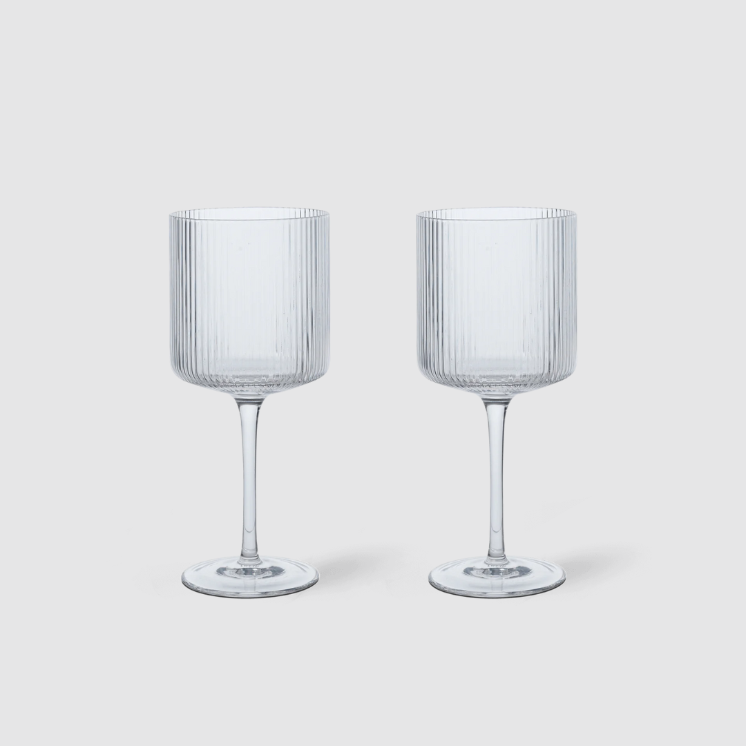 Slim, ribbed, and elegantly understated – the Ripple White Wine Glasses by Ferm Living bring clarity and refinement to any table setting. Expertly mouth-blown, they embody a timeless design language rooted in calm simplicity.