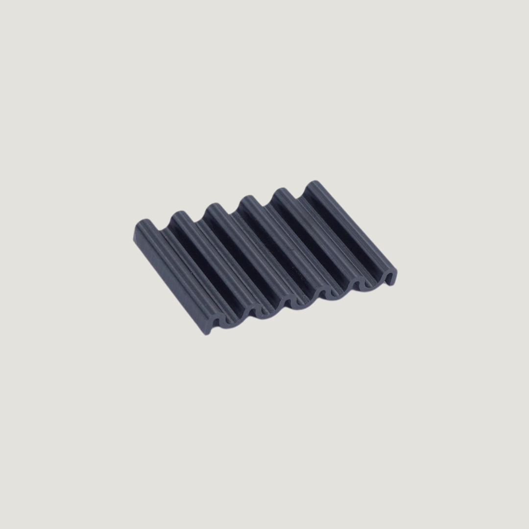 Die Seifenschale "Sepia Black" ist das Ergebnis einer Zusammenarbeit zwischen Coudre Berlin und Radian Design. Sie wird im 3D-Druckverfahren in Berlin hergestellt – aus hochwertigem, recyceltem PET-Kunststoff, der aus gesammeltem Plastikabfall in Europa gewonnen und aufbereitet wird.